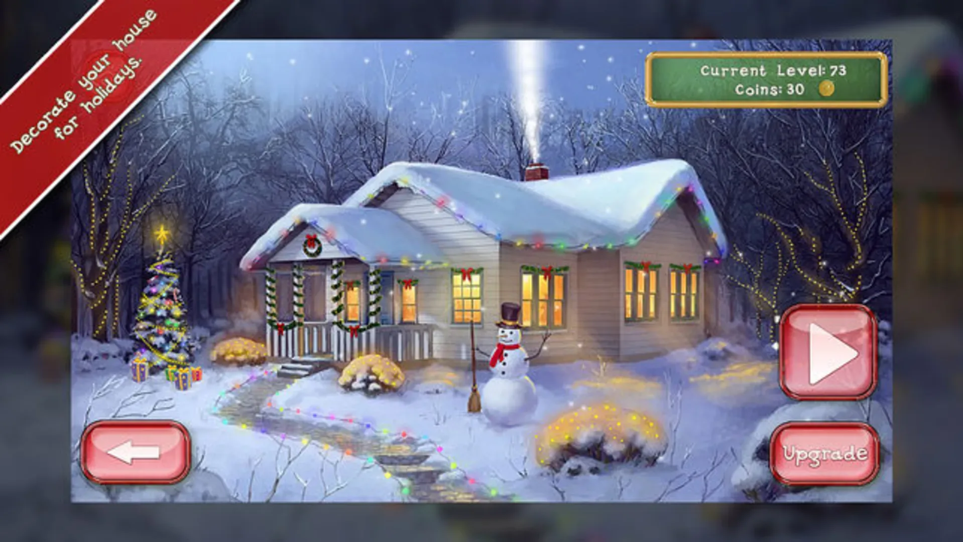 Play through awesome Match 3 levels, collect Santa's coins and prepare your house for Christmas with beautiful ornaments and illuminations in Christmas Mansion! Use incredible power-ups to blast through the puzzles and have a fantastic Christmas Puzzle holiday! Each new level is more difficult than the last, so prepare for an exciting time!