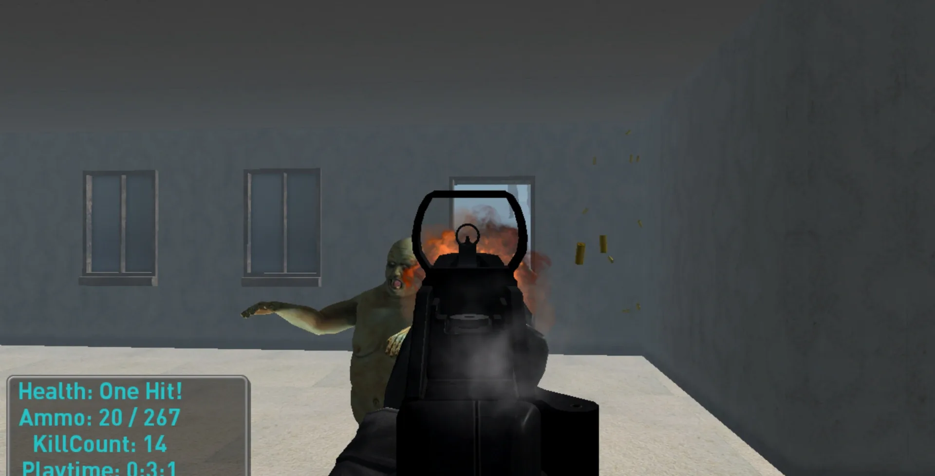 GamePlay: Find guns around town. Kill zombies in town and try to survive as long as possible.