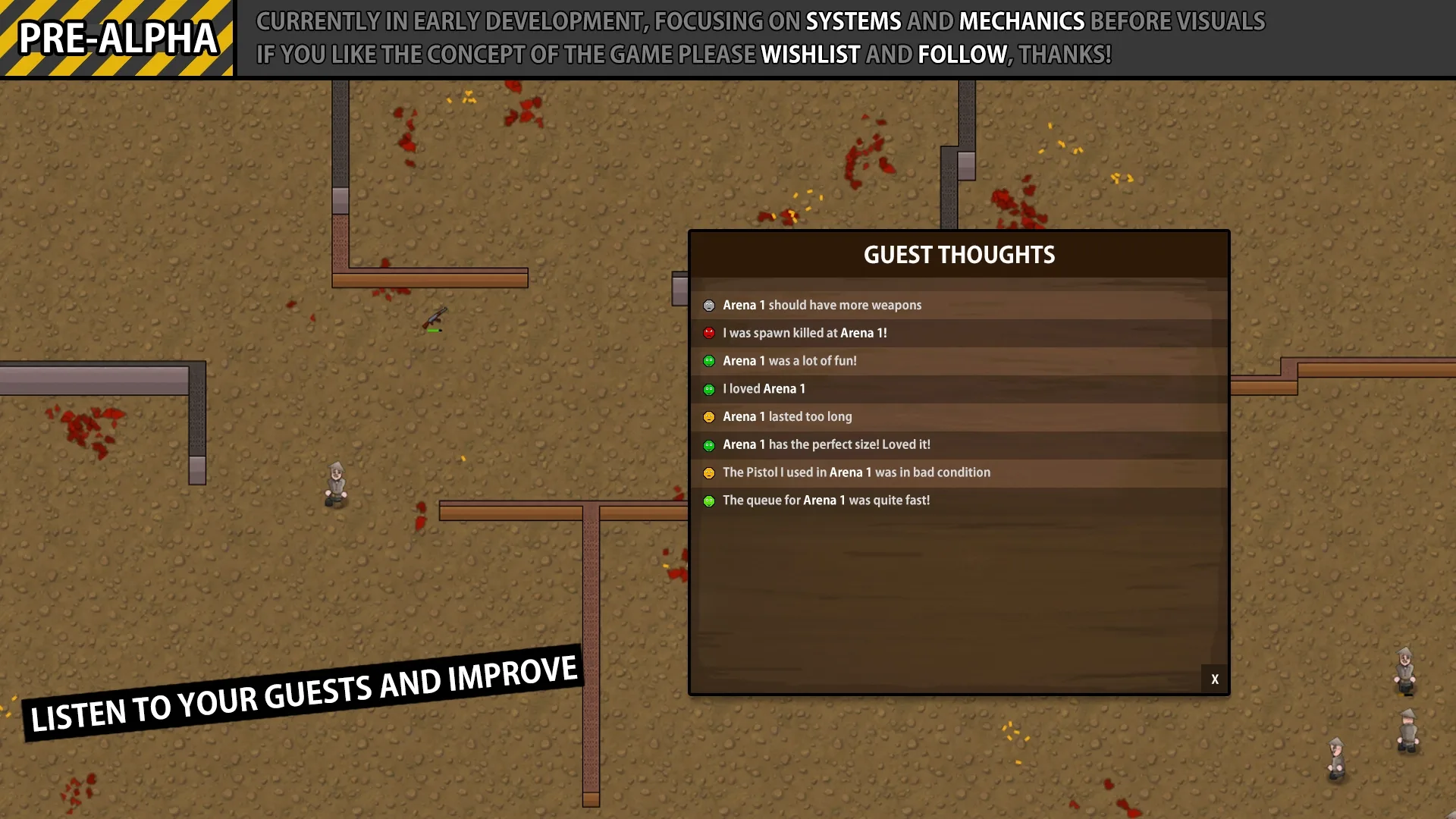 Design and build arenas for your guests to fight in, keep them happy, your workers paid and make a profit!