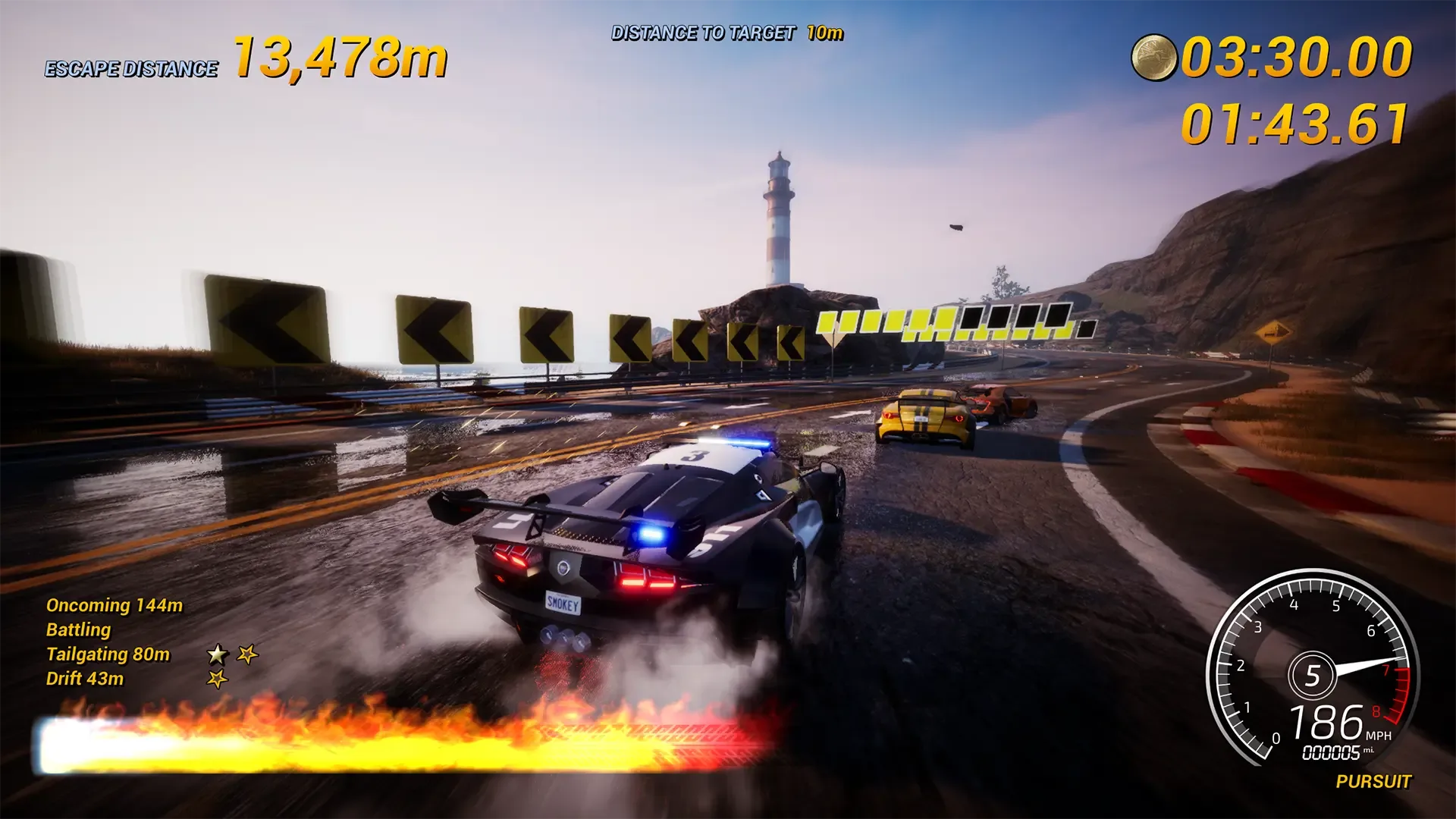 Dangerous Driving is a closed track competitive racing game featuring boost, takedowns, destruction and the biggest car crashes seen in a racing game to date.