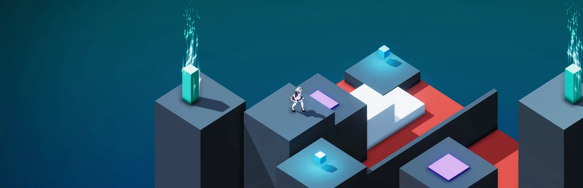 OneShift is a puzzle platformer where the player has the ability to freeze/unfreeze time and shift through worlds to collect blue cubes. But only one world can be active at a time. Later in the game, a world rotating mechanic is unveiled, which makes everything more complex!