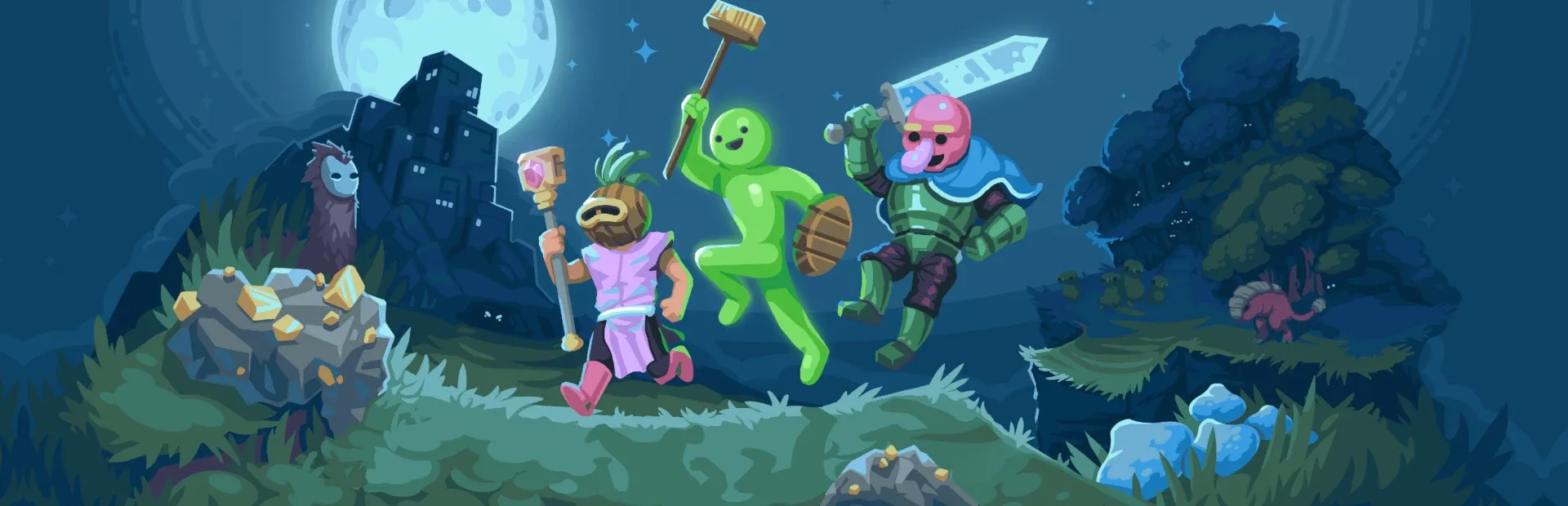 MoonQuest is a procedurally-generated adventure game with roguelike and minecraftian gameplay. Each game presents a new world to explore in your quest to illuminate the endless night. Seek out the lost forest, delve into the spider caves, storm the castle of the Silver King, discover vast seams of gold ore, and craft a hat of such splendour that the cosmos will be jealous.