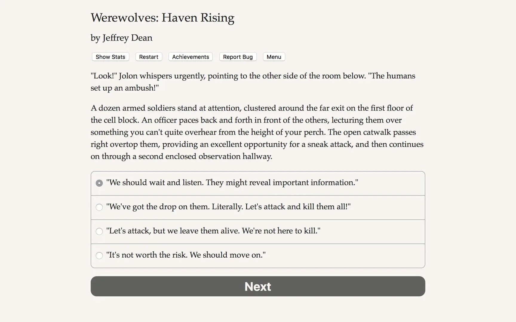Rise up, werewolves! Throw off the shackles of a tyrannical military police state. Fight for your pack! Fight for your honor! Fight for your freedom!