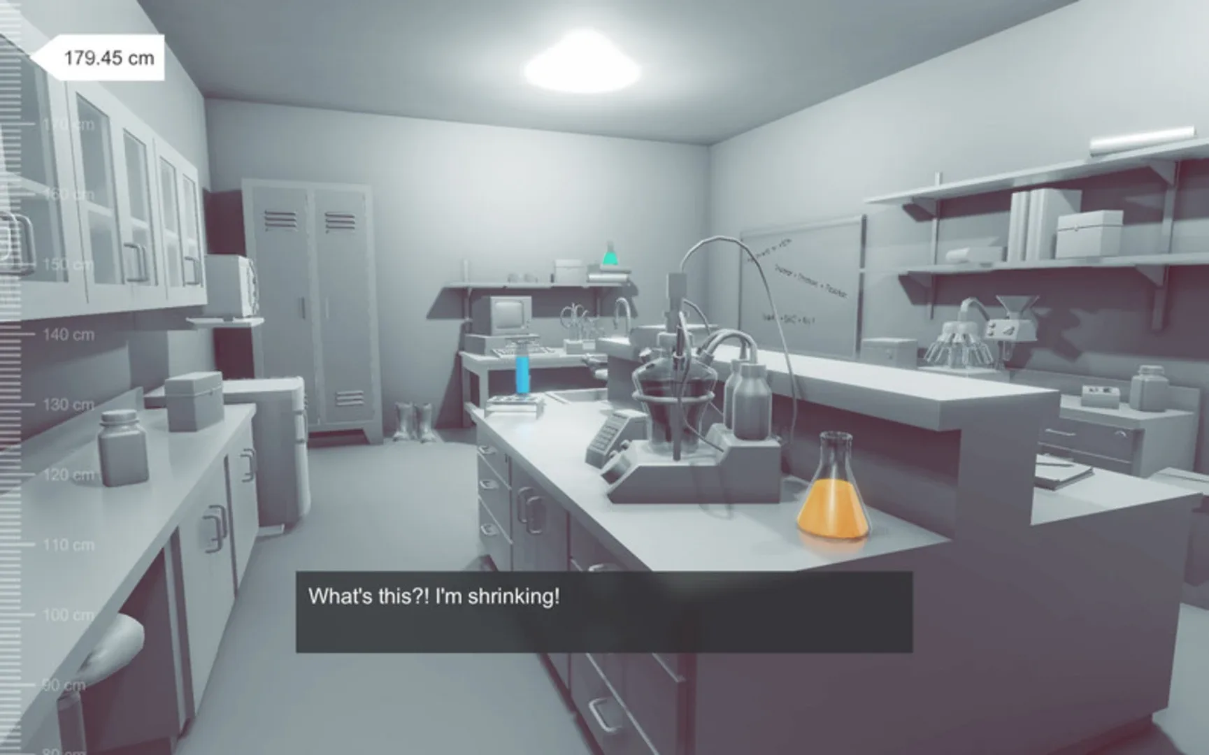You play as a shrinking scientist in a race against time. Your task is to find all the necessary formulas and ingredients to produce the antidote, in order to stop shrinking. Though processing ingredients takes valuable time – time you should use to search for missing components or rearrange the lab for when you're too small to reach the machines you need.