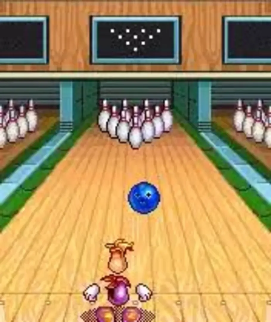 A game released for mobile phones, a non-colour version releasing in 2002 followed by the colour version in 2003. Rayman Bowling is a simple bowling simulator featuring 11 different locations each one more difficult than the previous the levels being: the tutorial, classic, bridge, traps, carpet, rock, lava, panic, bomb, fire and bolt.