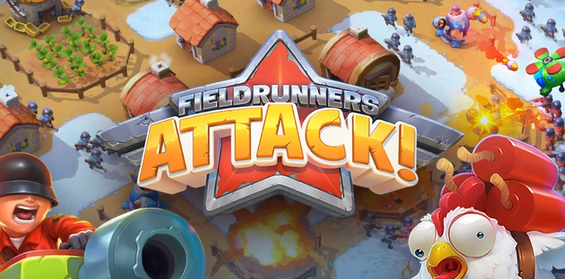 Hold onto your helmets - the award-winning Fieldrunners series returns! From exploding Popcorn Chicken to the mighty Megabot, it’s time to assemble the ultimate army as you fight to build your empire, and conquer rival players from around the world! Recruit heroes, train troops, add defensive structures and manage resources to transform a quaint town into your own impenetrable fortress of mayhem. Whether you’re defending your turf, conquering the land in the campaign missions, or ripping through opponents worldwide in multiplayer skirmishes, there’s loot and glory to be had at every turn. FEATURES: • Addicting full control strategic combat gameplay • Take charge and attack in the Fieldrunners universe! • Manage resources to turn your town into an impenetrable fortress! • Recruit and upgrade powerful heroes, each with their own unique abilities! • Tear through enemy bases with tactical real-time attacks • Test your might against 60+ campaign missions! • Climb the ranks with your friends by waging war on players around the world and stealing loot • Field an army of Soldiers, Rocketeers, Tanks and more military marvels! • Defend your turf with deadly Gatling, Cannon and Flame towers – as well as other Fieldrunners favorites and all-new defensive turrets • Transform your towers to adapt against a variety of threats, be they man, machine, or something else entirely!