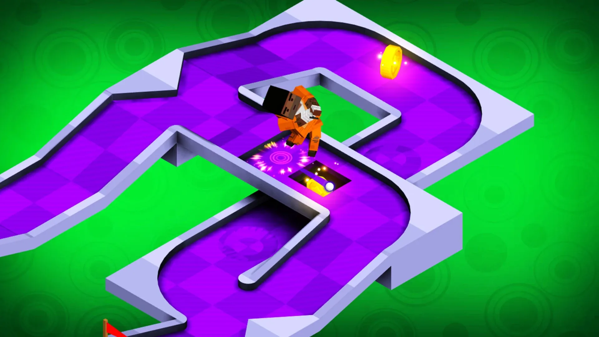 Challenging 3D mini golf simulator with colorful isometric graphics.
