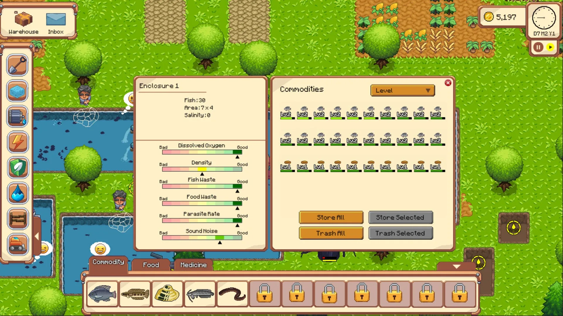 Aquaculture Land is an aquafarming simulation game. In this game, you will act as a businessman that runs a freshwater fish farm. You will manage all things related to fisheries, conduct researches, and hunt for new species to get benefits for your business.