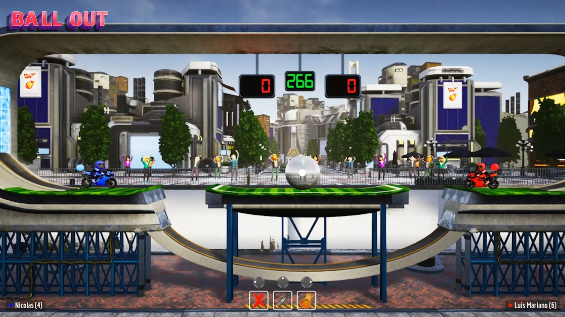 Discover a crazy Motorcycle - Football game that combines reactivity and speed! In Ball Out, get on several vehicles and compete against your friends or other online players on various tracks with one goal in mind: score as many goals as possible! Gain experience and customize your equipment to show your opponents what you are worth.