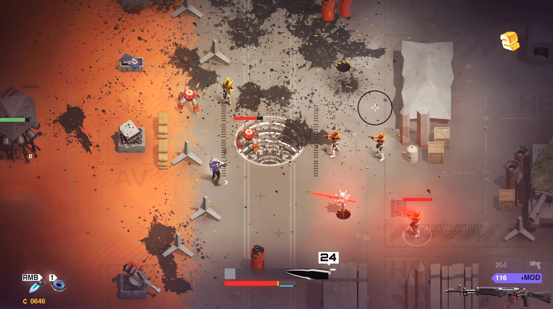 Synthetik: Arena is a fast paced Top-Down Shooter set in a retro-futuristic world, combining the next level in gun-play with powerful tech to experiment with. Players are thrown into their Android subconscious and face the varied challenges of the machine god Zir to escape and end the Machine Legion.