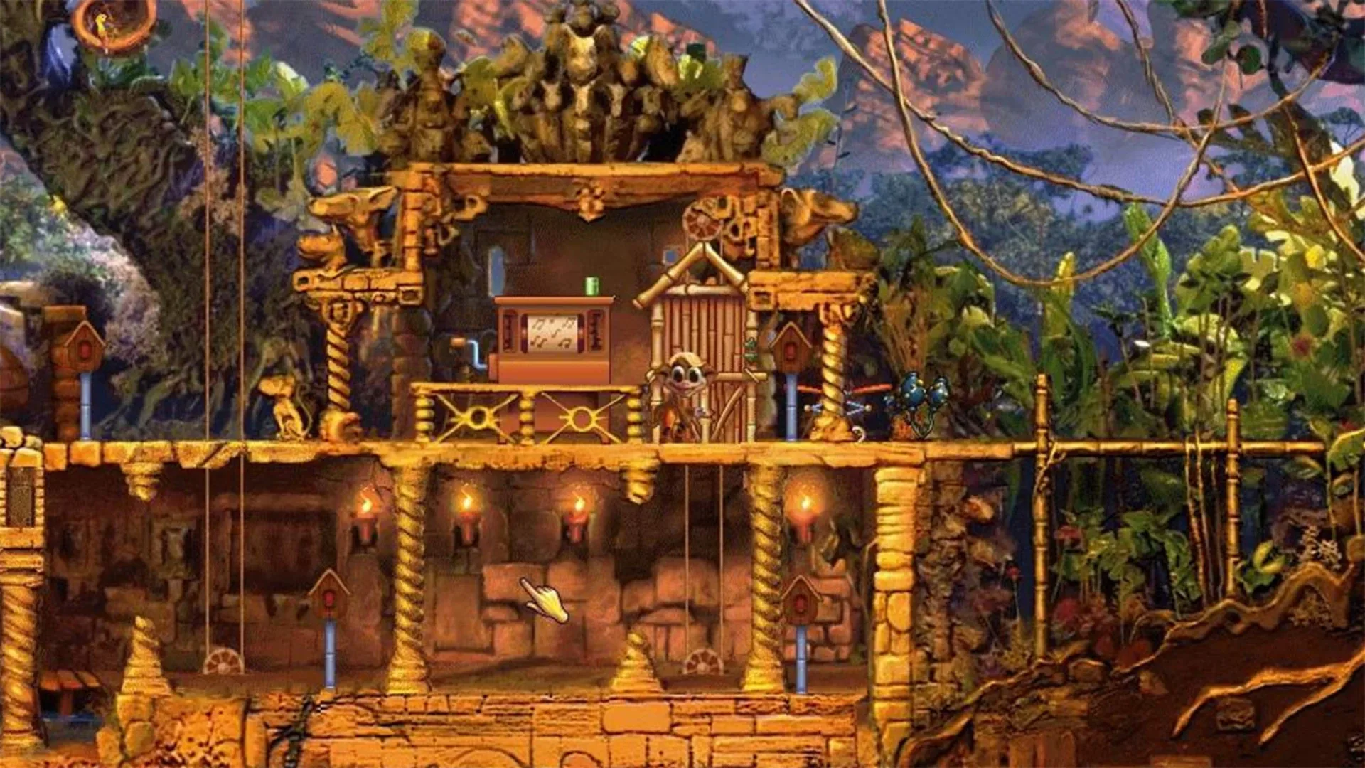 Discover a large, living landscape - the surface a world called Albia. You exist in this world only as a virtual presence, a sort of remote-control existence, which the computer portrays as a hand-shaped mouse cursor. In this world are a range of locations and strange creatures, related loosely (and with considerable poetic license) to Northern myth. You begin near to the long-abandoned home of a family of Norns (small furry creatures), where a few eggs, languishing in a broken-down incubator, are almost all that remains of the Nornir race.