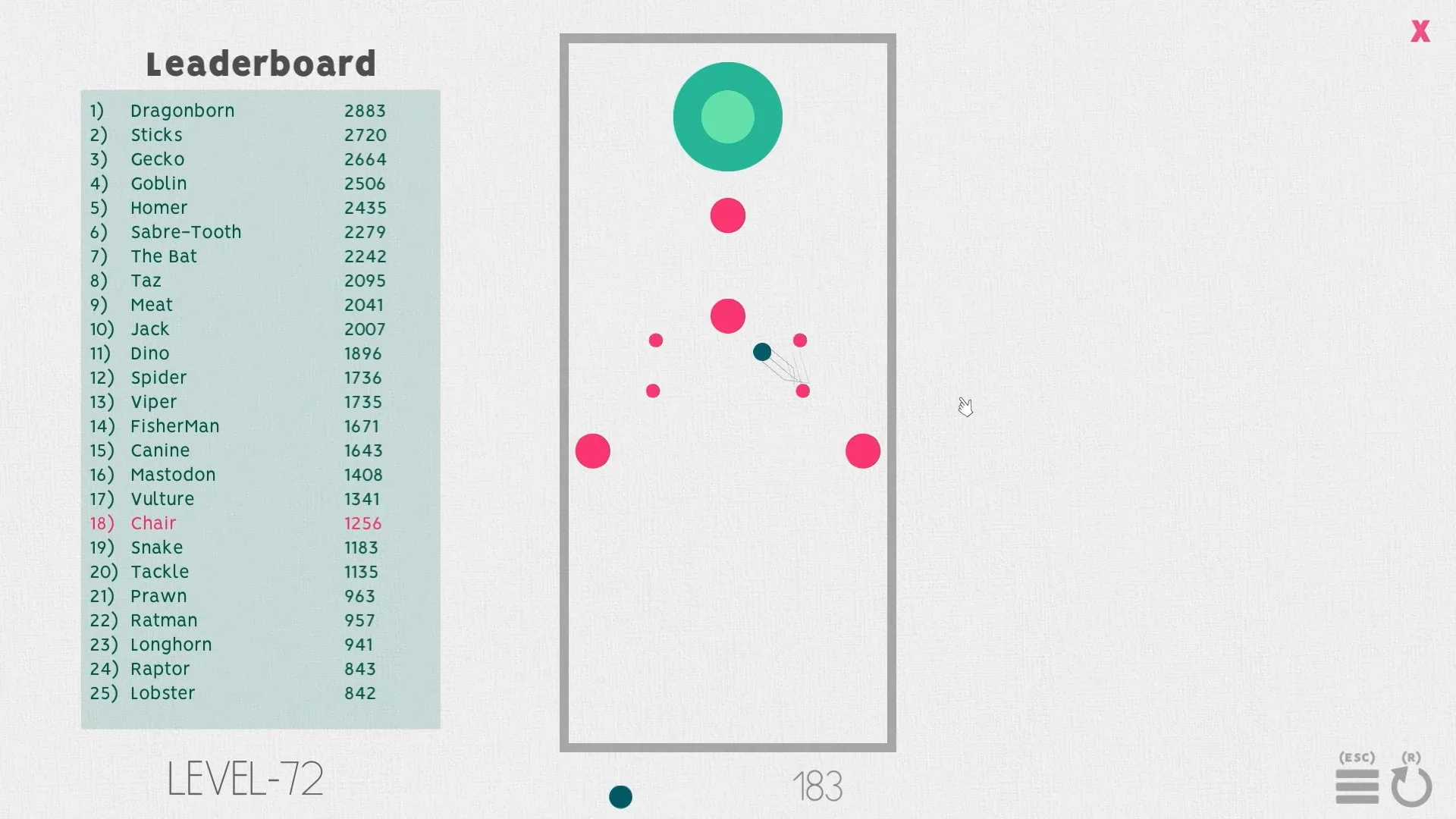 Minimalist ball game with original gameplay, including 90 levels with puzzle elements and endless survival mode. You can also compete with other players live.