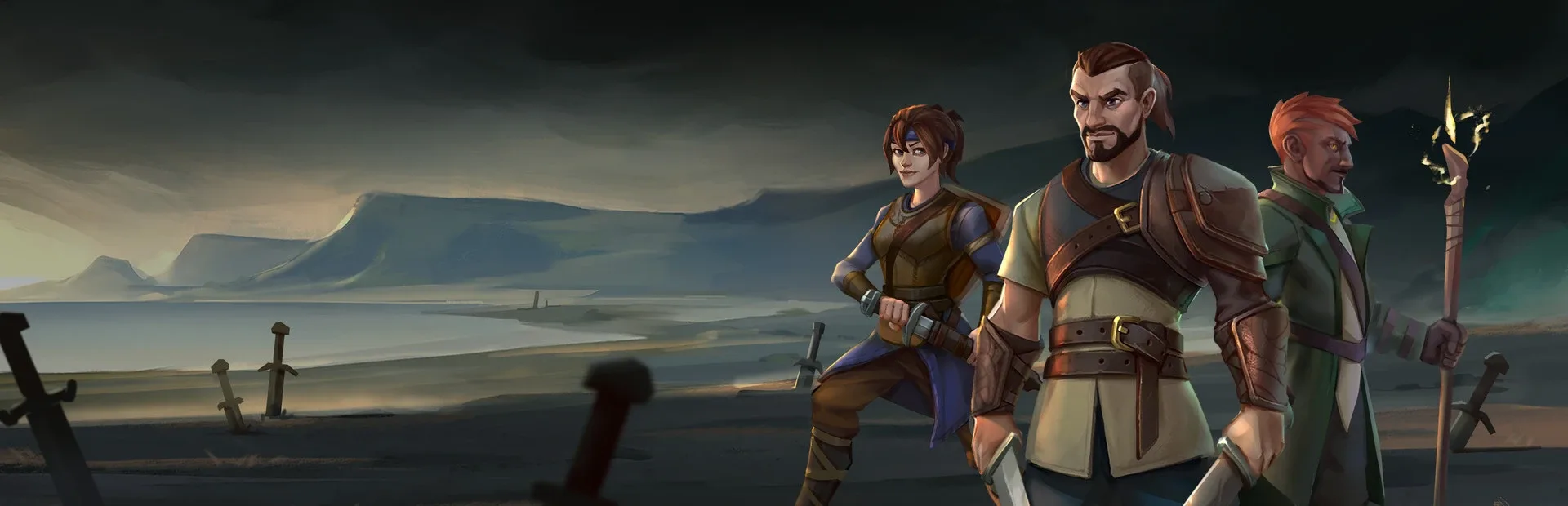A turn-based tactical RPG rendered in a rich, low-poly aesthetic. Build your own team of mercenaries, forge alliances, wage battles, and journey beyond the seething wall of fog known only as the Murk in this decision-influenced, narrative-driven adventure. What dangers await you on Shores Unknown?