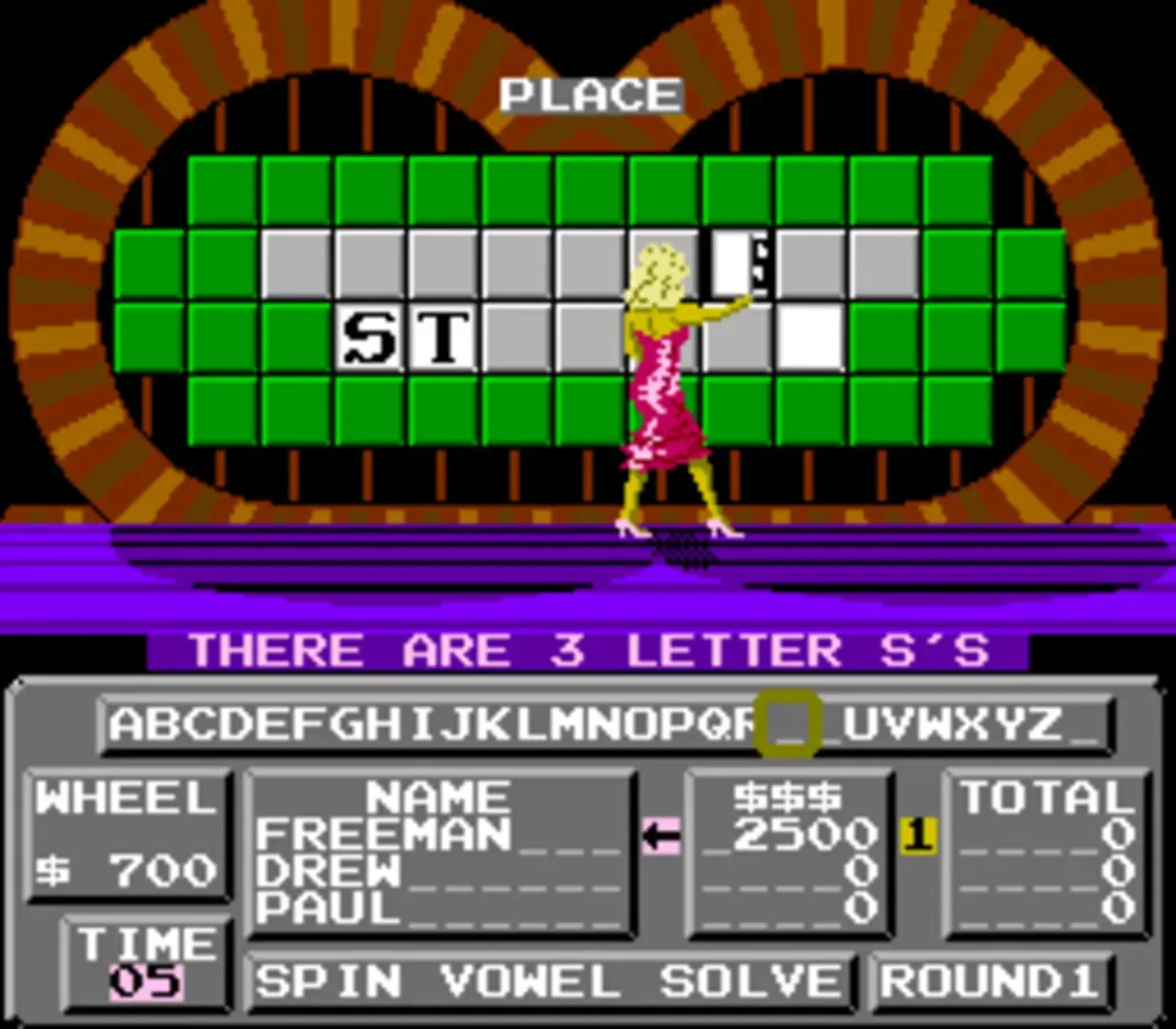 Wheel of Fortune was the first game based on the TV game show for the NES. It was developed by Rare and released on the same month as their NES Jeopardy! adaptation. Rare would follow it up with two more NES adaptations of the show: Wheel of Fortune: Junior Edition and Wheel of Fortune: Family Edition. It follows the rules of the show, where people spin a wheel and then try to solve a hangman puzzle, either guessing a consonant or spending their reward money to buy a vowel. Up to three human players can play via a pass-and-play system. Players must input their answers within a time limit using the in-game text parser.