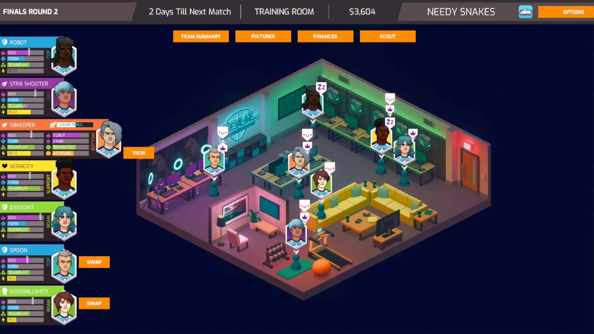 YOU are the manager of a rookie Esports team! Only you can lead them to fame and glory! Recruit star players, balance your budget, train the team to be the best they can be, and become Esports League Champions! Work as a T.E.A.M.!