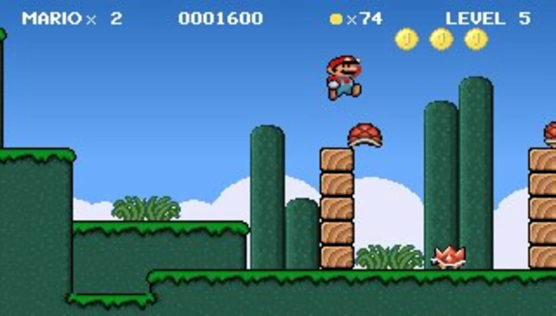 Mario & Luigi is an unofficial DOS remake of Super Mario Bros. Just like in the original game, it features Mario the plumber, jumping around, collecting pickups and defeating enemies across Mushroom Kingdom. Mario can find a mushroom which makes him grow, and a fire flower that allows him to shoot fireballs.