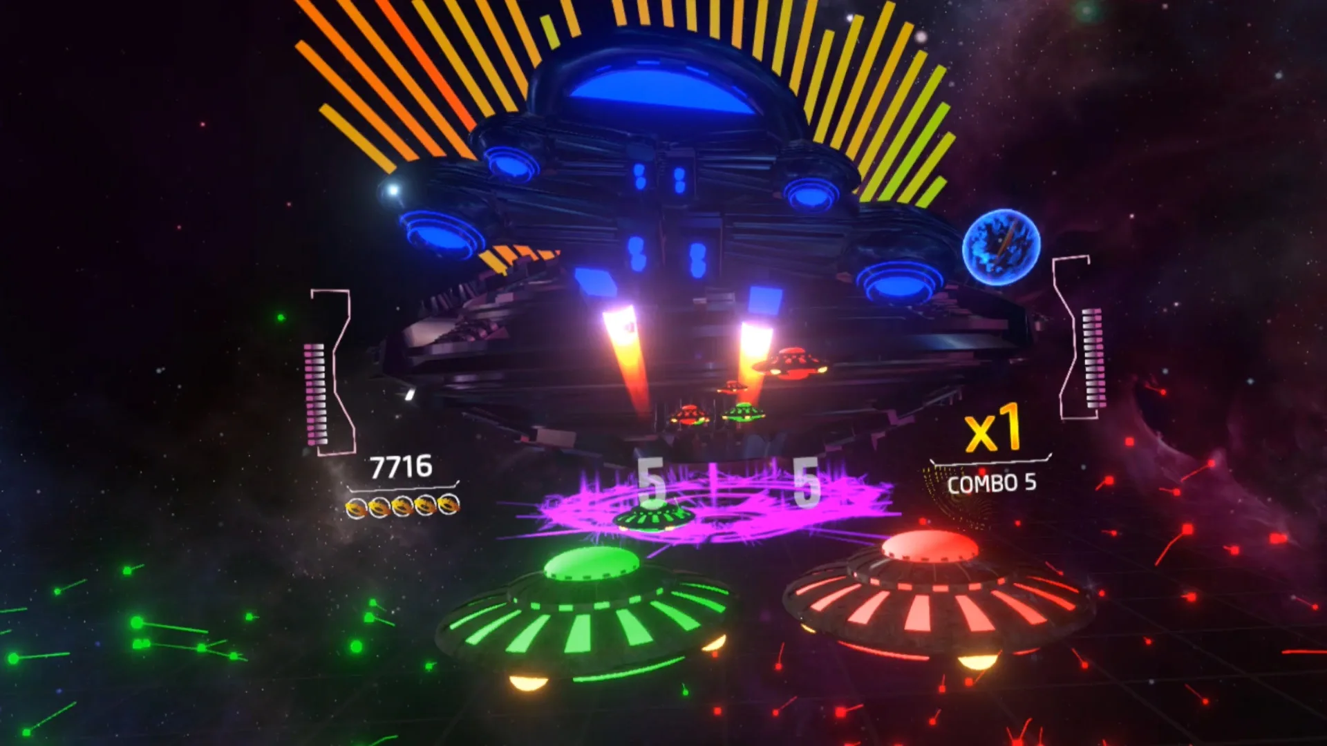 Rhythm Defender is a VR Rhythm game where you need to punch UFO's that are trying to invade Earth synced to build-in music tracks or your own music.