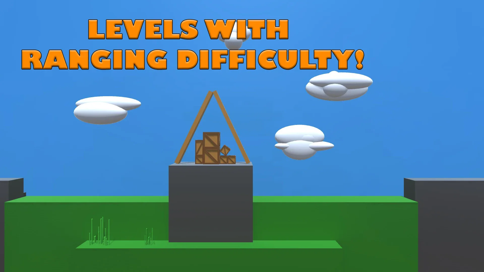 A creative building-like game, where the objective is to throw physics enabled objects to create structures to allow the objective of the level to be completed. Can be a very challenging puzzler or an easy, sit back and relax game.