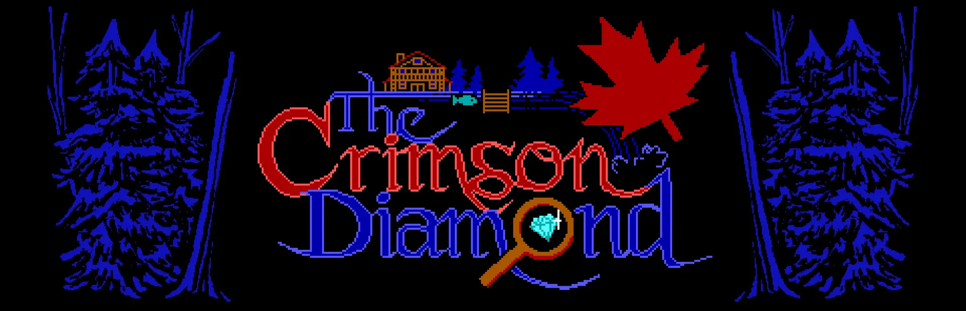 "The Crimson Diamond is a text-parser EGA mystery adventure game by indie game developer Julia Minamata. The Crimson Diamond is inspired by classic adventure games of the late 80s and early 90s, particularly Sierra On-line's The Colonel's Bequest. Explore Crimson Lodge and its environs! Eavesdrop on intriguing characters! Solve mysteries!" "The Crimson Diamond is a text parser mystery adventure game where you play as amateur geologist and reluctant detective Nancy Maple. Follow Nancy as she travels north to the fictional ghost town of Crimson, Ontario to investigate the discovery of a massive diamond in the area. Eavesdrop on conversations to learn more about the eccentric cast of characters who find themselves gathered at Crimson Lodge. Explore the lodge and its environs to evaluate the diamond claim, and maybe solve a mystery or two along the way! The Crimson Diamond is a cozy mystery that encourages reading and engaging in the story over devious arcade challenges."