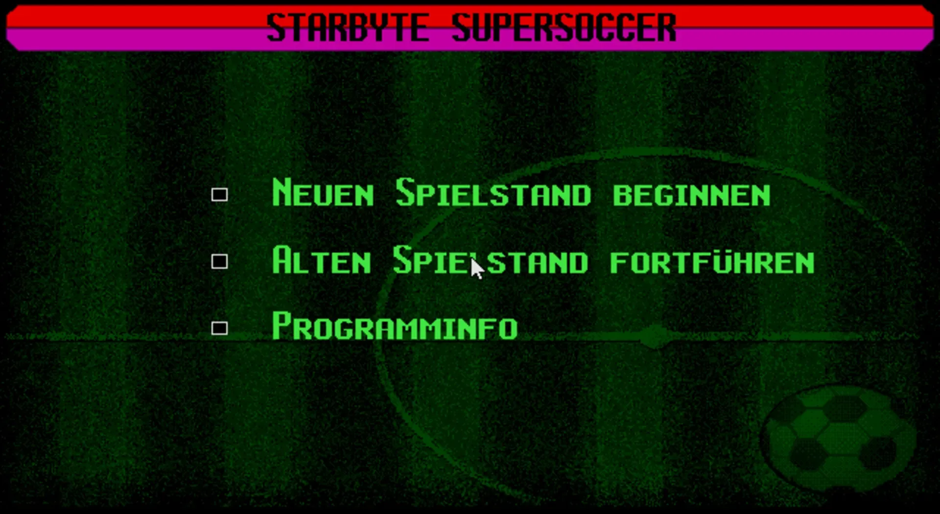Starbyte Super Soccer is a managerial soccer simulation in which the player takes the role of a soccer manager, responsible both for athletic and financial aspects. The goal of the game is to bring the chosen team from the fourth into the first German soccer league; the game is won when a certain goal (chosen before the game starts) is reached. Besides the German league of the season 1991/1992 (with 18 instead of the real 20 teams) there are also a few fictional scenarios available, e.g. one in which first and return match are directly behind each other or a world league with national teams. During the game, the player has the usual options to choose from, e.g. lineup, tactics, training camps, transfer market, expanding the stadium or merchandising. The strength of an athlete is calculated from the factors position (how well he can play on the position he has to play), shape (if and how well he played in the past) and energy (physical shape). After each season the manager has to have a certain amount of money on the club's account (how much depends on the chosen difficulty level) in order to avoid being fired. The game also rates the manager's performance which is mostly interesting when multiple players are participating. Controls are completely menu based.