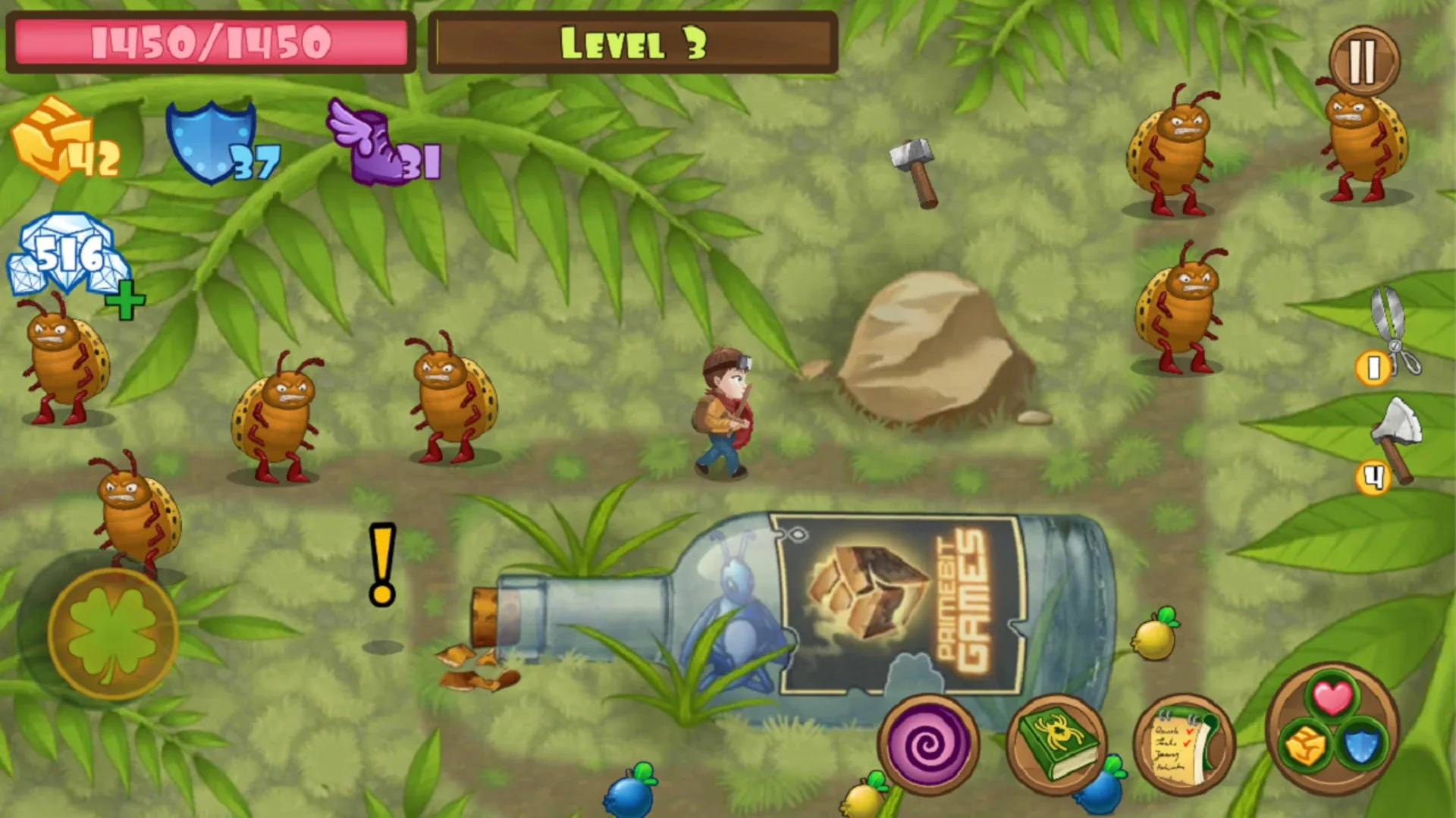 Children have dug a magic medallion, as a result of which they shrink to the size of insects in their garden! One of them is kidnapped by ants. You need to find magical medallion and rescue your family!