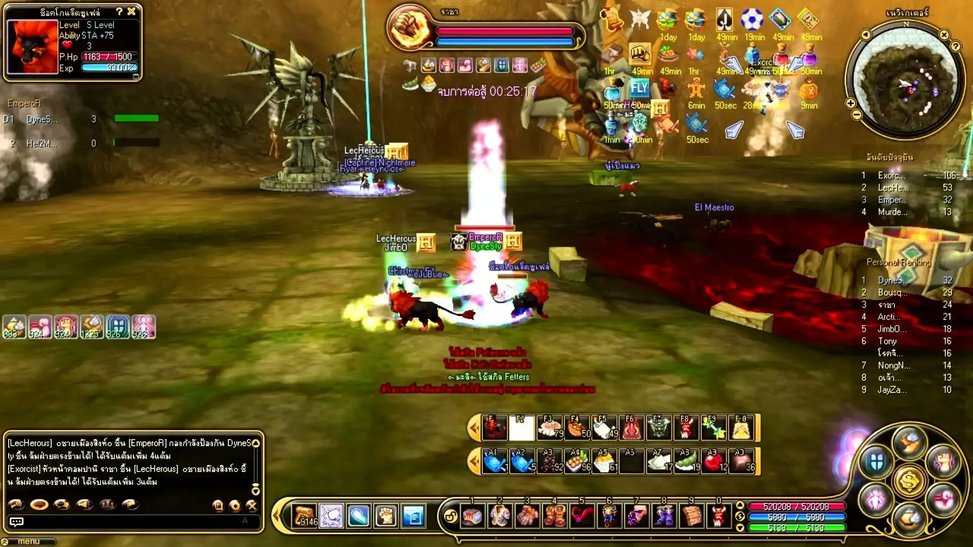 Flyff (short for Fly for Fun) is a fantasy MMORPG by Korean development company Gala Lab (formerly Aeonsoft & nFlavor). Flyff is a fairly typical party-oriented grinding game where no character can do everything; efficient play requires working in groups to level up by killing monsters, or Masquerpets. Its main distinctiveness lies in its flying system: flying is the normal method of transportation for characters above level 20. Flyff is hosted in 13 countries and 10 languages and is played by over 30 million people. GAMEPLAY: Players control an avatar that spends most of its active time fighting and most of its inactive time running a shop. Character classes are chosen at level 15 and sub-classes at levels 60 and 130, referred to as the first, second, and third job changes. The job changes are obligatory—when a character reaches the requisite level, experience gain stops until the completion of one of the job quests. At level 120, the character can become a Master, returning to level 60 with enhanced powers and able to work its way back up to level 121 and become a Hero. As of version 17, Heroes may select a third job class at level 130 and level up to the current cap of 150. Levels are gained based on experience, which can be acquired by killing Masquerpets and by performing quests. Quests generally involve killing specific Masquerpets and collecting the different quest objects they drop; a typical early quest is that of "Party of Is," with the requirement of collecting 7 Chupims through killing Pukepukes. At each level, the character receives skill points that can be invested in skills available to its job(s). There are two types of skills: those used for attacking and those used for protection and/or enhancement. Skills may have cool-down times and may cause status effects, with confusion, stun, and bleed among the most common effect. It is not possible to acquire maximum levels in all available skills until becoming a level 60 Master. Characters can be improved by acquiring objects such as improved equipment. Masquerpets drop equipment, the in-game currency penya, consumable items such as food and potions, and quest objects, or players can purchase equipment from other players note this is usually extremely expensive because of the high quality gear that can be acquired this way. These can all be traded between players; Flyff gameplay involves large amounts of buying and selling in order to collect desired equipment. Most equipment items have minimum levels at which they can be used. Combat Flyff features melee, ranged and magic combat, with different skills available to different classes. Health points, fight points, and magic power bars are able to be replenished through food, vital drinks and mana refreshers; some classes depend on assists to heal them with magic. PvP Player versus player (PvP) combat is allowed on all servers without penalty in the form of dueling. Both players must be over level 15, and within 30 levels of each other, then they must confirm the duel first unless they are within the PvP Arena, a free-for-all environment found on all servers. Player killing is allowed only on the Yetti server and carries a high penalty. SOCIAL SYSTEMS: Lord System Introduced in version 12, the Lord system allows eligible players to be voted as the Lord of their server for 2 weeks. Players must have obtained Hero or Master status to qualify as a Lord candidate. While a Lord, a player may introduce a number of events on the server. Lords are taxed between 0 to 20% on all NPC purchases and returns and are given a portion of all player taxes. 10% of eligible voters must participate in the Lord vote for a Lord to be chosen. To vote for a candidate, a player must be at least level 60 and must have logged in to the game within the last 30 days. Each player may only vote for one candidate per election. Party System Players who join a party gain increased experience and loot. A lone player does not benefit from or harm a party. A party starts as a Regular Party, in which experience is distributed evenly among party members in the same location. At level 10, the party becomes Advanced, at which point experience can be distributed to players based on their amount of damage done. An Advanced Party may have up to 8 players; having this many players in a party increases player experience with each monster killed during training. Guild System Guilds allow players to socialize; players within a guild can chat with each other and many in-game activities are guild-based. Guilds have a hierarchical chain of command, consisting of the Master/Leader, Kingpins, Captains, Supporters, and Rookies. The guild master may change the permissions for guild members, allowing members to withdraw items or money from the guild bank, rank-up or de-rank other members, and be paid daily. Guilds are able to choose an emblem and cloak to represent themselves and have the use of a warehouse. When a guild reaches the appropriate guild level, increased by supporting the guild through quest items and Penya, the guild master may create guild cloaks at a cost that sport the guild's symbol. A large amount of Flyff end-game content is guild-related. Guild Siege This event, held on Saturday in channel 1 of each server, allows guilds to compete in a free-for-all environment. A total of 8 Guilds may enter, and each Guild may have 10 players. To compete, the Guild leader must place a bid; the 8 highest bidders compete. Clockworks War The Clockworks War is a guild dungeon that guilds of any level may enter a single time. If the guild fails against the dungeon boss, its players may reattempt to win as many times as necessary for a time period of one hour. Only one guild is permitted inside the Clockworks Arena at a time. Couple System The couple system, implemented in Version 13, allows a marriage-style connection between two characters. Characters who become a couple are granted special buffs and skills and receive gifts with ne