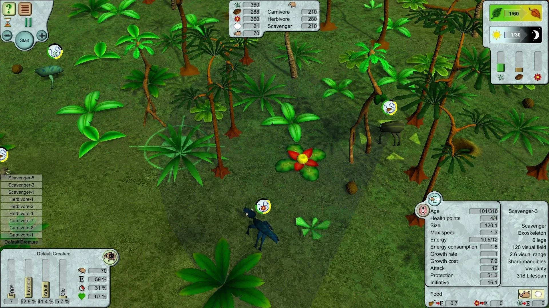 Sandbox nature simulation. Create your creature. Specify the environment. Tune your creature’s behavior to help them to survive the season.
