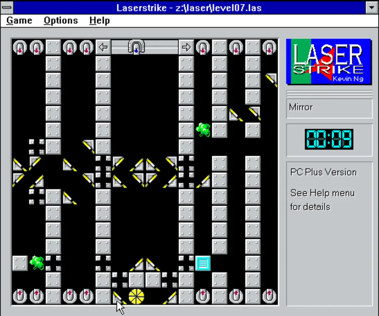 Laserstrike is a single-player, shareware, puzzle game. The object of the game is to fire a laser at a target and hit it twice to complete a level. Lasers can only travel in straight lines and so the player must use lasers and other canons to move blocks and mirrors in order to achieve the task. The full version of the game has twenty two puzzles and seven coaching or tutorial puzzles.