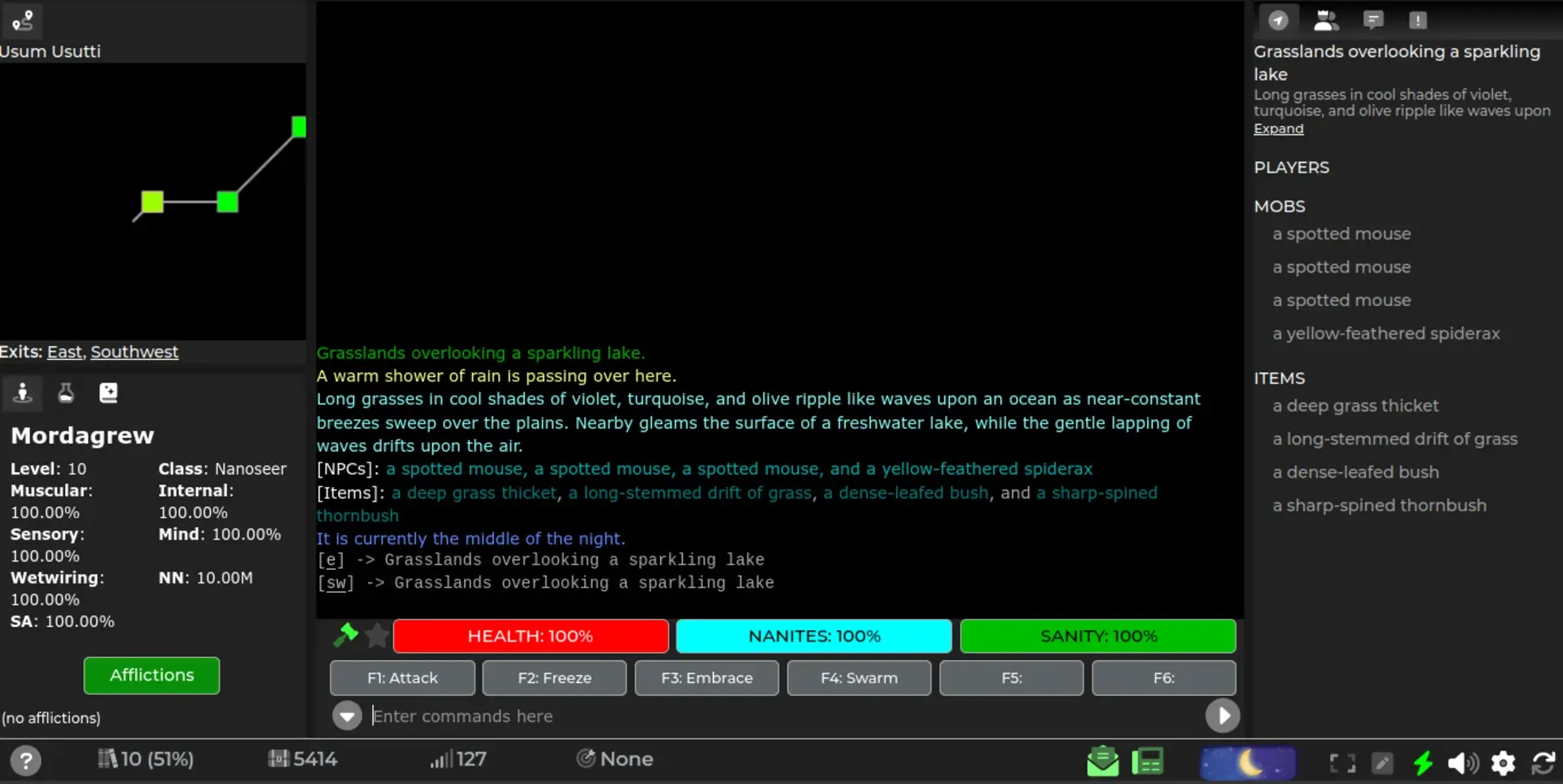 Starmourn is a science fiction themed MUD. The sixth MUD released by Iron Realms Entertainment and the first in 9 years. Players create characters, explore the universe, and participate with other users in a variety of ways including PvP, PvE, roleplay, politics, economics, and more. Users play Starmourn through a proprietary, cross-platform client, directly in their browser, including Android and iOS.