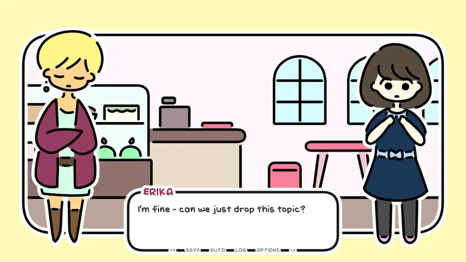 erika is planning a spa day for her trans friend haru. she keeps running into different issues though... and haru seems to be having problems of her own. LAST DAY OF SPRING is a visual novel. play as erika, a university student, and join her as she plans a spa day for her transgender friend haru. content warning: this game is for all ages, but it discusses issues that a transgender women in japan might face, which is a topic that can be sensitive and personal. also, please keep in mind that this takes place in japan with japanese characters.