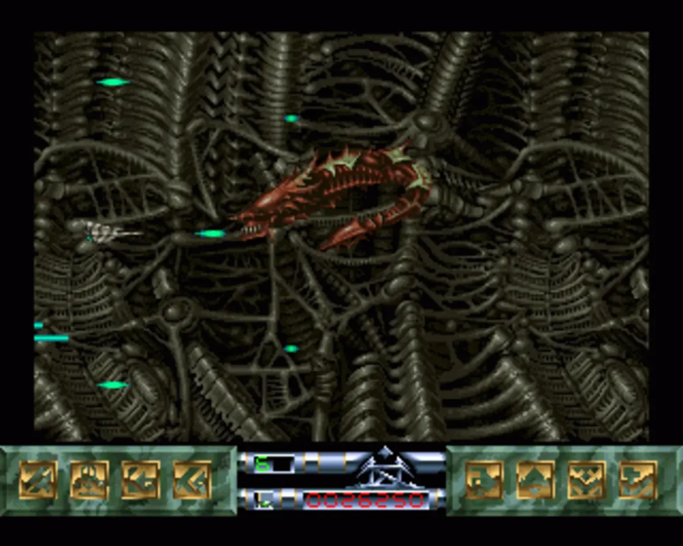 A horizontal shoot-em-up in the vein of Silkworm; you fly a plane (a 'White Shark' no less) across various terrains killing baddies. The reason this game stands out the most is its innovative attempt at a weapons system, which allows the player to choose from up to 37 million weapon combinations(!).