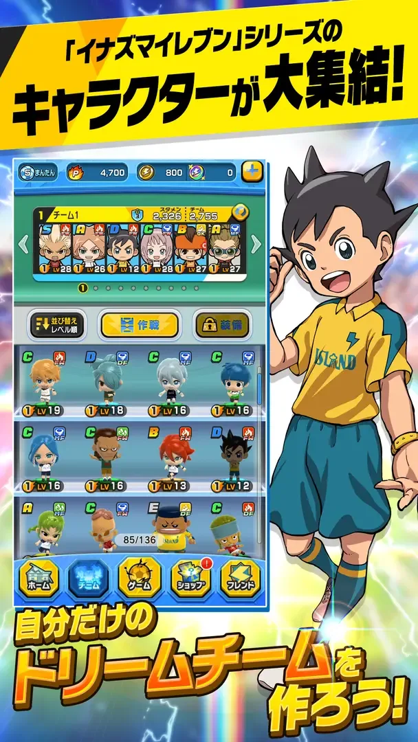 Inazuma Eleven SD is a mobile ohajiki-based online battle football game that is originated from the Ianzuma Eleven series. It allows players to collect and form a team of toy figure characters from the series to join the “Super Dimensional Toy Soccer” games. Players will be able to pass and shot the ball simply by flicking the characters. The ultimate skills of the characters also follows the settings of the original works. The game features a “Story Mode” with an original story where you can clear maps to obtain new figures and unlock new maps, as well as a “Stadium Battle Mode” where you can battle against players across Japan.