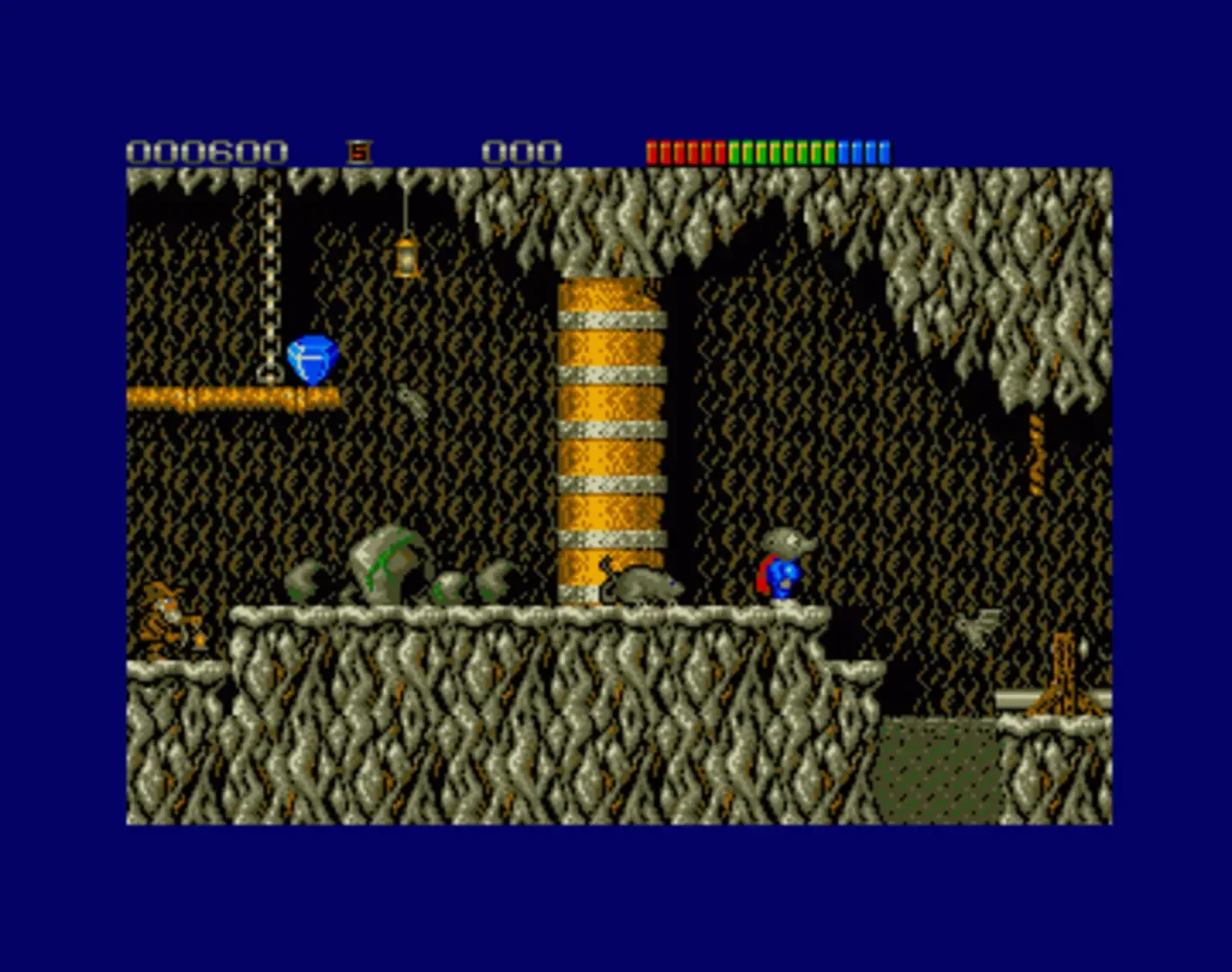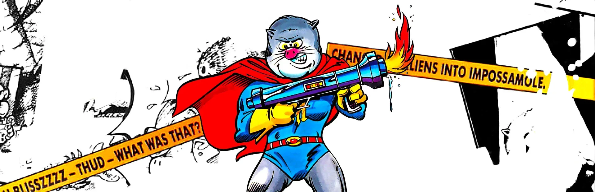 For Monty Mole, a day at the beach turns into the adventure of his life when he's beamed aboard an alien spacecraft. He's transformed into Impossamole, with super powers to save their planet from the evil Vlarg! Now you're up to your cape in Vlarg's monster bosses with crack-up creatures ready to nail your tail! Power up your laser to blast the Dragon Boss. Bomb the Abominable Snowman. Then trash the Venus Moletrap before he has you for lunch. Swim, fly and blast through five wacky action-packed worlds. The fiendish Vlarg awaits your final desperate battle!