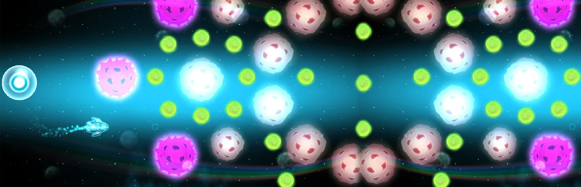 Experience a challenging spaceship game without shooting. Collect, teleport, become a ghost and beat another level inside the same world. Can you do this job?