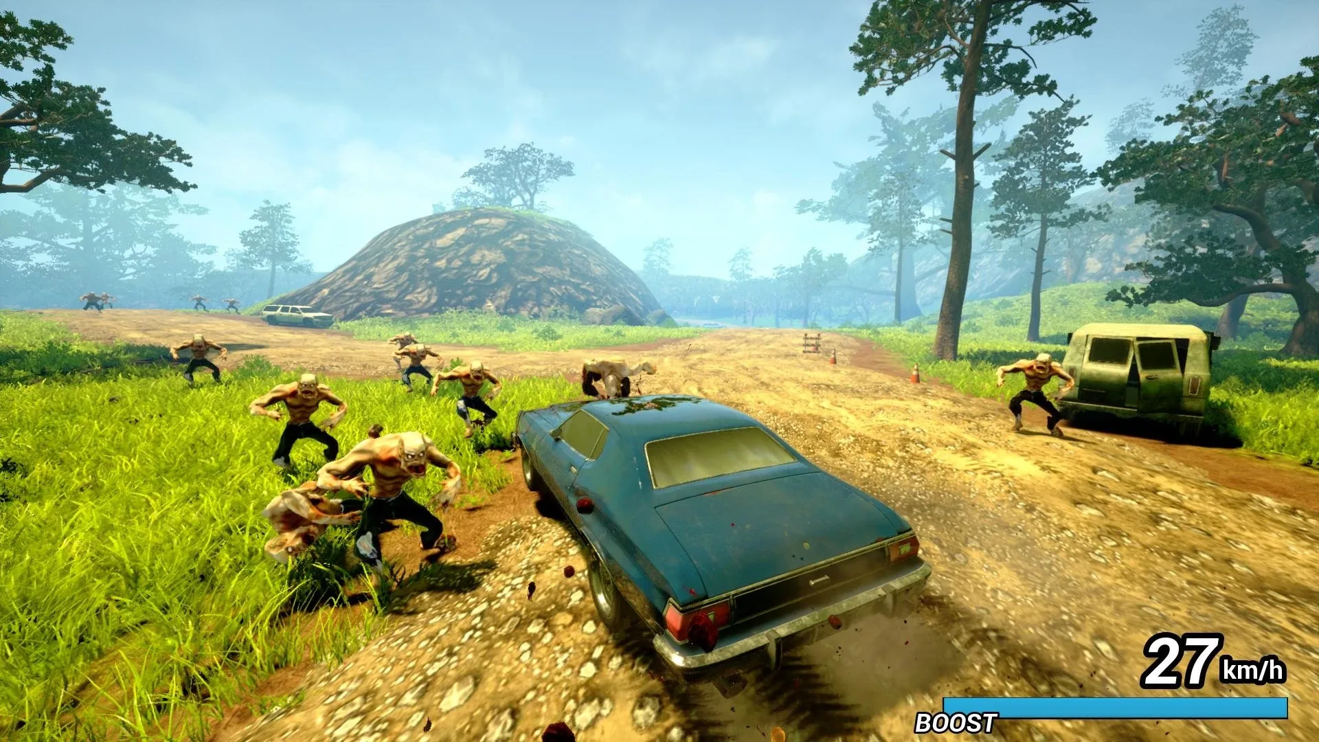 Drive through a forest infested of zombies, crush all the undeads on your way, rescue the survivors and unlock all the vehicles to achieve the best score!