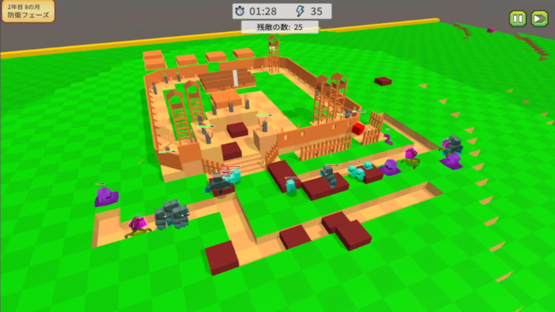 A tower defense game based on Japanese castles. Excavate the ground to create a moat, build walls and turrets, and fight off the enemies that attack you!