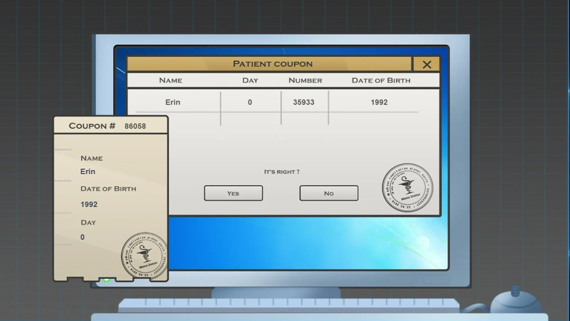 Game simulator of the work of a general practitioner in a hospital. Your goal is to identify diseases in patients and achieve the highest level. Take care of the routine of the physician, control of coupons and carefully check each incoming patient for the presence of certain diseases.