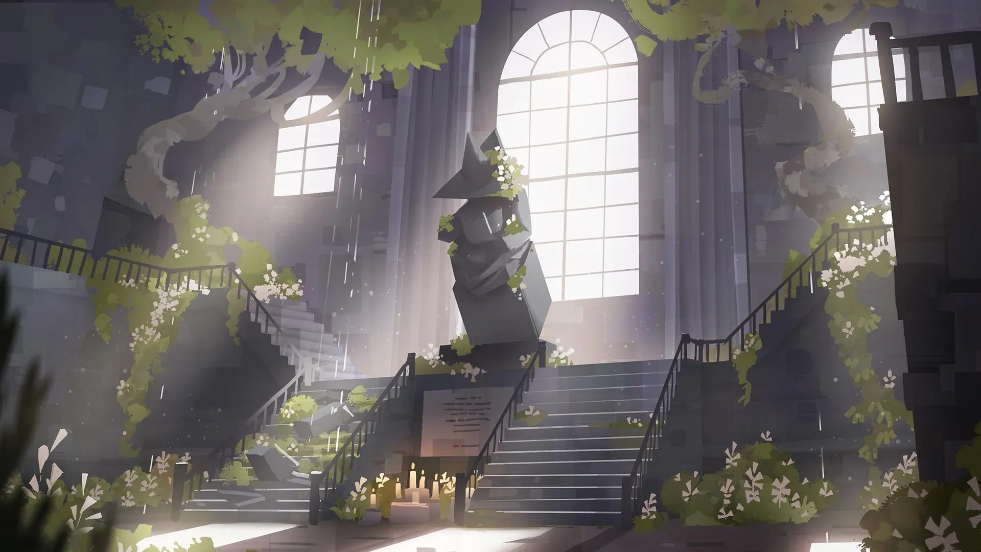 "When music plays, the sun shall stay." A girl with flowers growing on her head and an incredible white being with a human form── Deemo. As a melody issues forth from the center of the train station, the rain gradually stops, and the sky clears up once again. In the endless pouring rain, the two of them search the fantasy kingdom for a hope that will save the world.