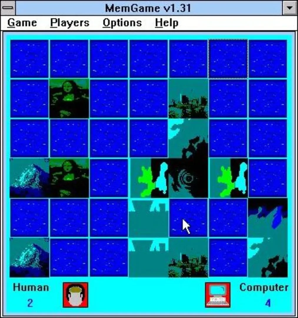 MemGame is a freeware, two player, mouse controlled, concentration game. It can be played player vs player or player vs computer.