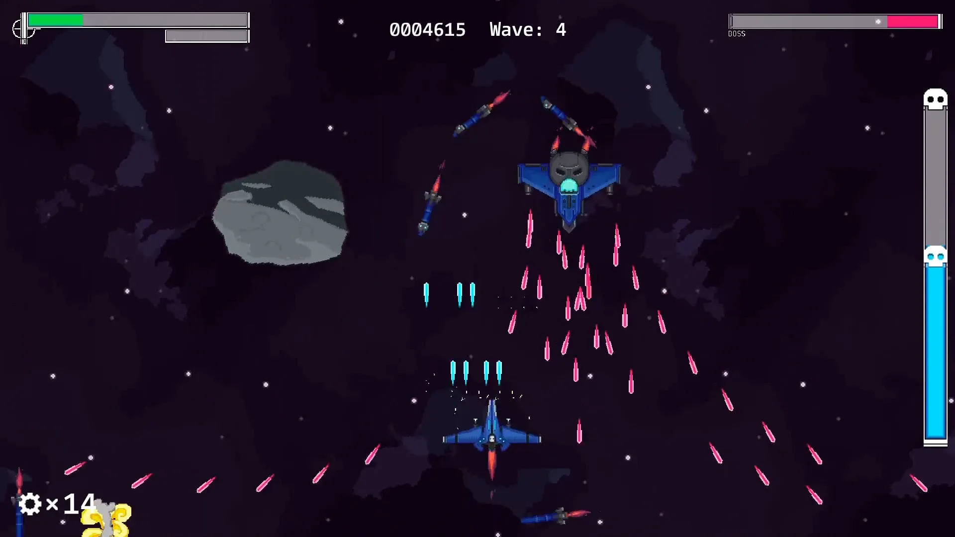 Chronicle: Unit Eight is a high-action arcade bullethell roguelike where you can destroy the enemies' bullets. Become a mercenary hired to take down a gluttonous space pirate and his fleet!
