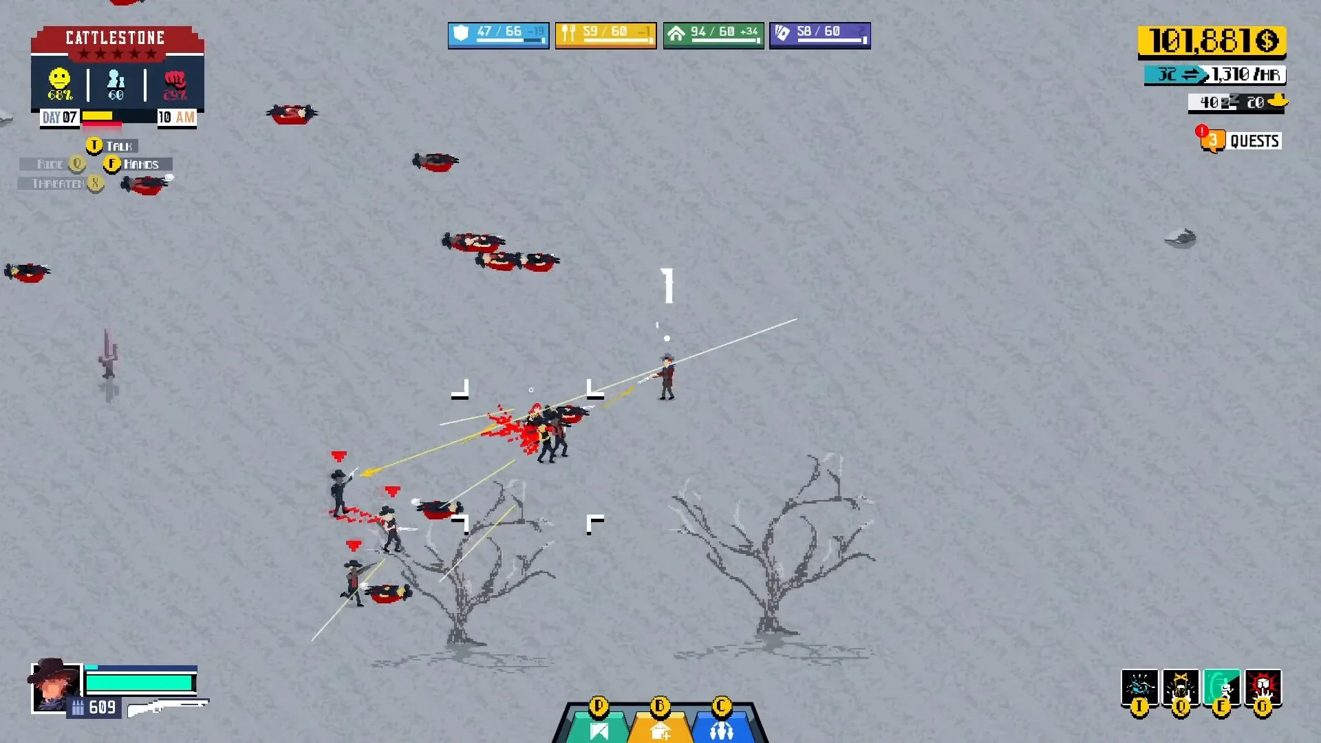 Wild West City-Builder meets Top-Down Shooter! Challenge your shooting and management skills in this 2D indie game.