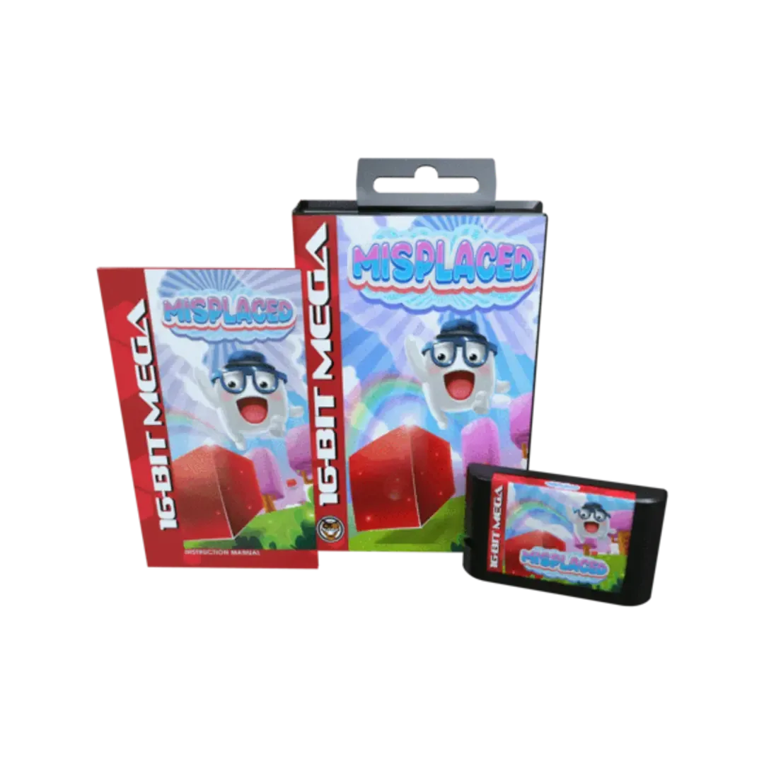 Misplaced is a homebrew puzzle game. The player directly controls the character Hara who wakes up on a small island floating in the clouds. This happens every day. Every level is a puzzle where a yellow key needs to be located. To reveal the key one or more red jewels need to be picked up and taken to a white square. Gradually different types of puzzle mechanics are introduced, often by a character called Hatter in the environment. Each level consists of a single, fixed screen. There are enemies such as ghosts present that need to be avoided. The main puzzle mechanic is the ability to stop time, record movement and then play back that movement at a different location. For instance Hara can stop time, move three steps down, three step left and three steps up. By recording and then launching this movement pattern at a different location, it becomes possible to move past a wall by walking on the air. This mechanic can be used as often as possible, but only one pattern can be stored and the amount of moves per pattern is limited.