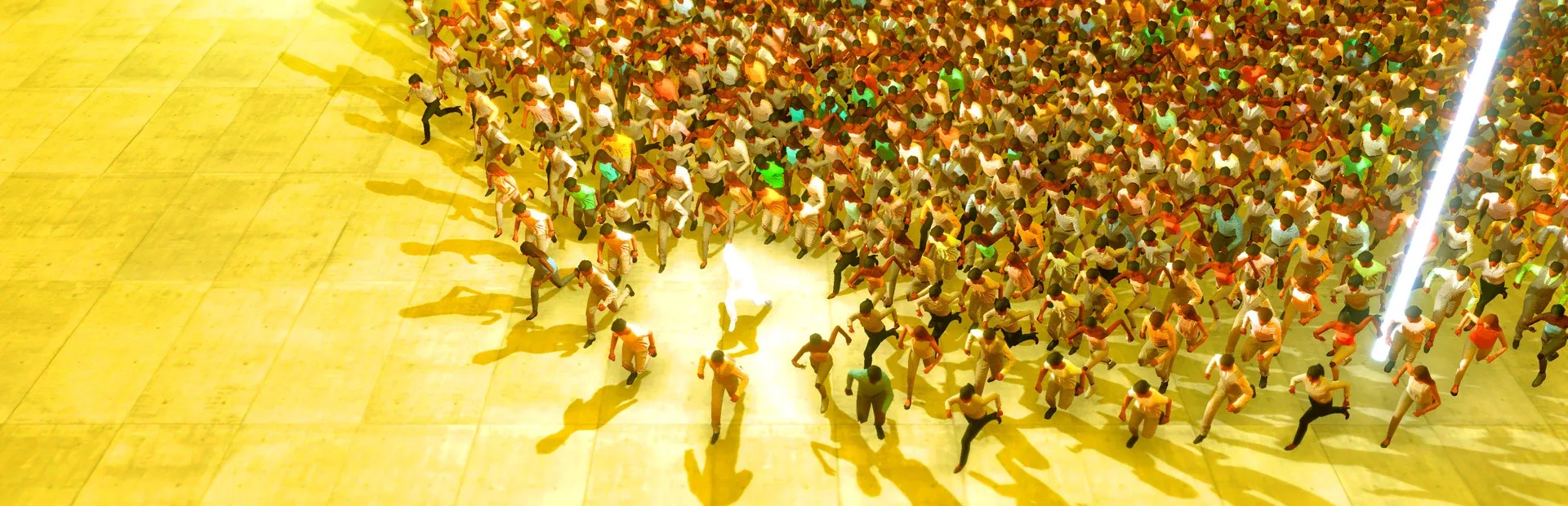 An awe-inspiring open-world VR art experience exploring human behaviour, the individual and the collective. Immerse yourself among thousands of strangers. Watch from above as your movements influence the crowd in changing environments that are both wondrous and intimidating.
