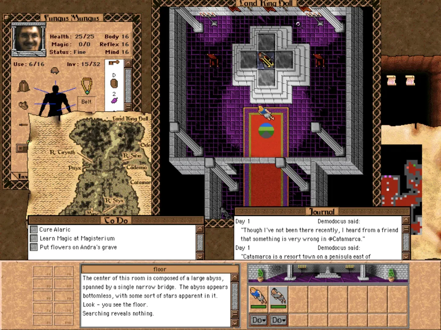 Cythera is an RPG that could be described as the Ultima of the Macintosh, as it focuses on immersion and interactivity, just like the DOS classic Ultima VII. It features single-character world exploration, a high degree of interactivity with objects in the environment, a hunger system, and keyword-based dialogues.