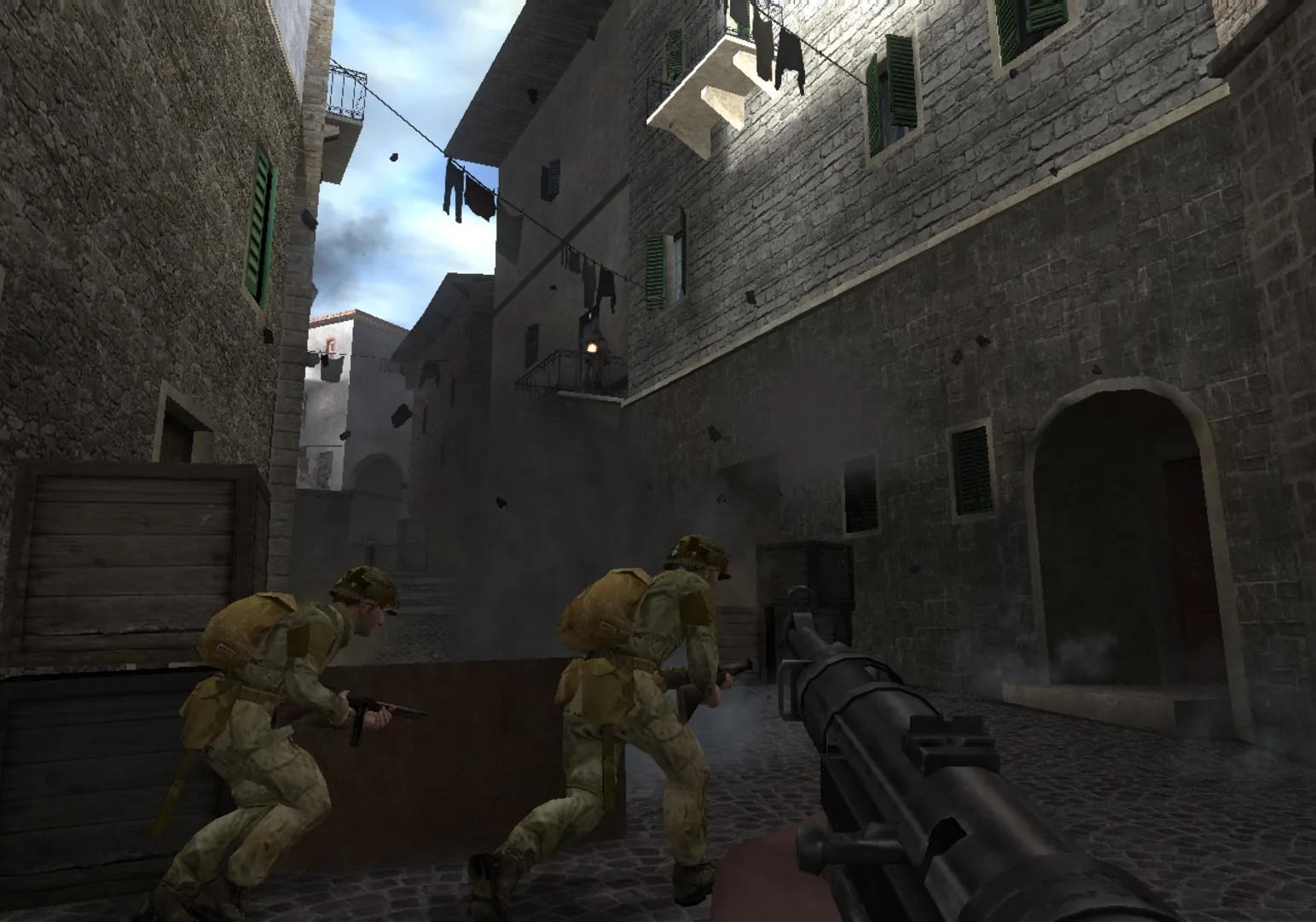 Players take on the role of Sgt. Frank Keegan, a member of the 82nd Airborne Division, and 17th Airborne Division fighting the Axis forces of Nazi Germany and the Kingdom of Italy. The first mission, which is Operation Husky places Keegan in a C-47 aircraft somewhere off the coast of Sicily Suddenly, the plane explodes, and Keegan is thrown out. He manages to deploy his parachute and make it to the ground, where he fights through a town against Italian forces. Once through the town, they make their way around the coast to a bunker somewhere in Sicily, and shoot their way in, defeating the German forces inside. For this level, you are armed with a Thompson submachine gun, you may pick up weapons such as the MP40 and the M1 Garand rifle.
