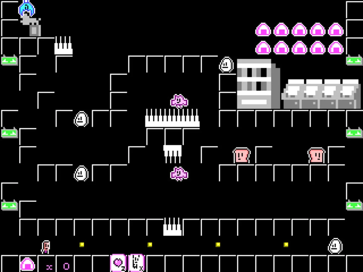 This is a jump action game that leads "me" which changes state by including the onigiri in the mouth to the power spot "Neko image" which is ahead of each stage which is a little challenging.