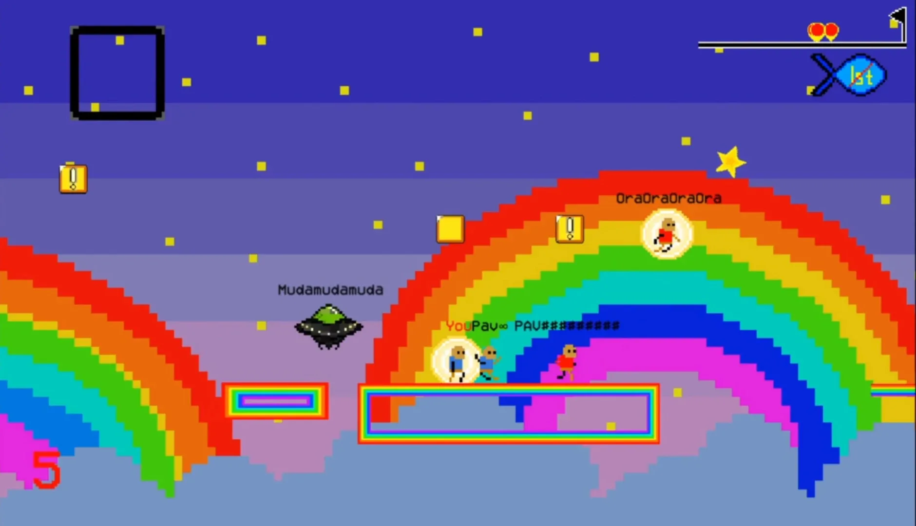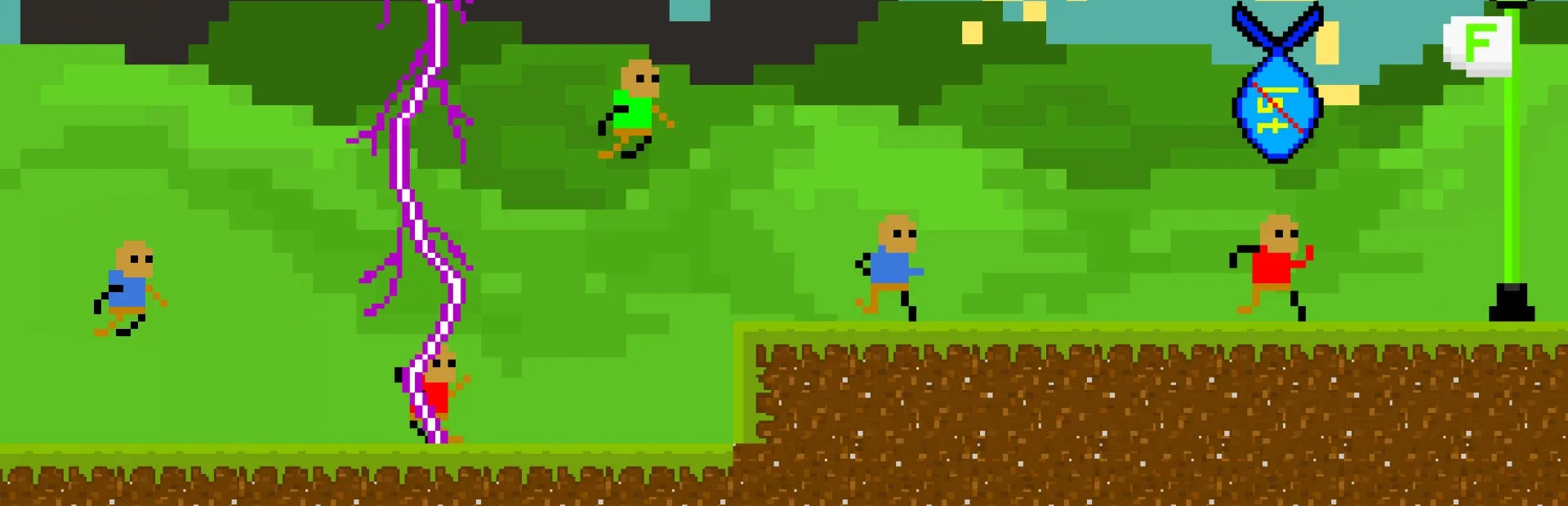 Tired of uneventful, single-player 2D platformers? This just another one of them...except you race against up to 7 other players online and create catastrophic chaos with items beyond insanity.