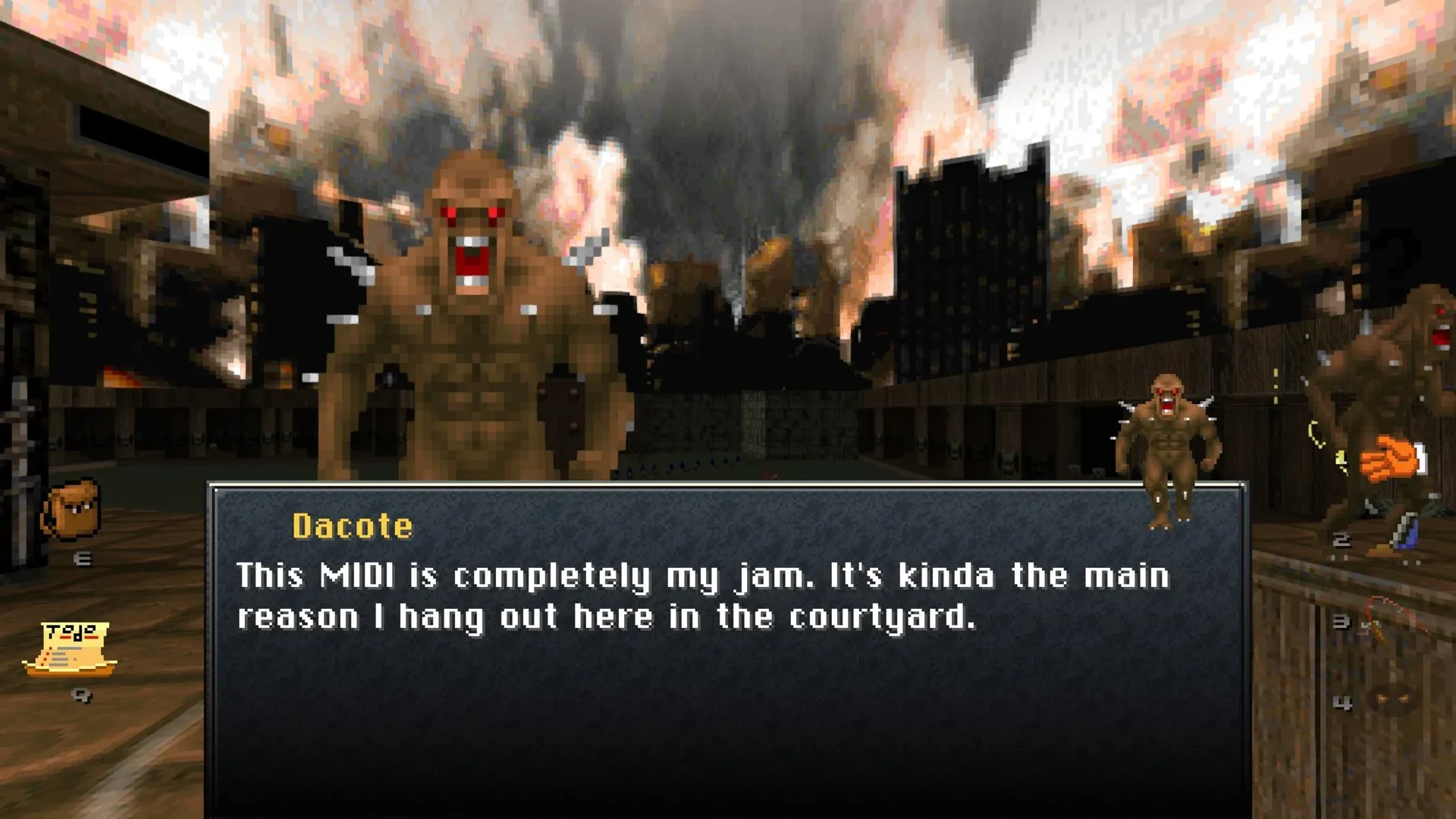 A cozy mod that turns any Doom level into a social space where each monster is a named character to talk to. You play as Mr. Friendly, a Guardian Demon tasked with helping improve the lives of Hell's minions as they recover from the latest space marine rampage.