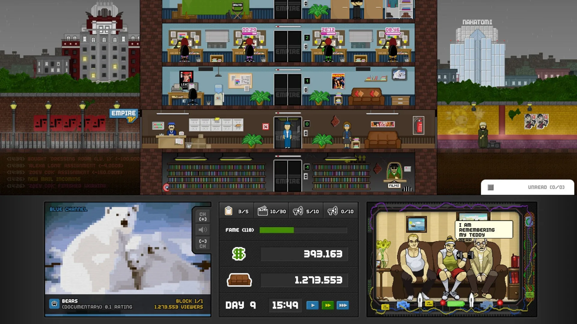 Empire TV Tycoon is a game for PC, Mac and Linux where you manage a TV Channel and fight for audiences taking decisions that will lead your channel to the fame. You will decide the content of your channel, select advertisers, hire workers, make your own productions, hire actors and much more!