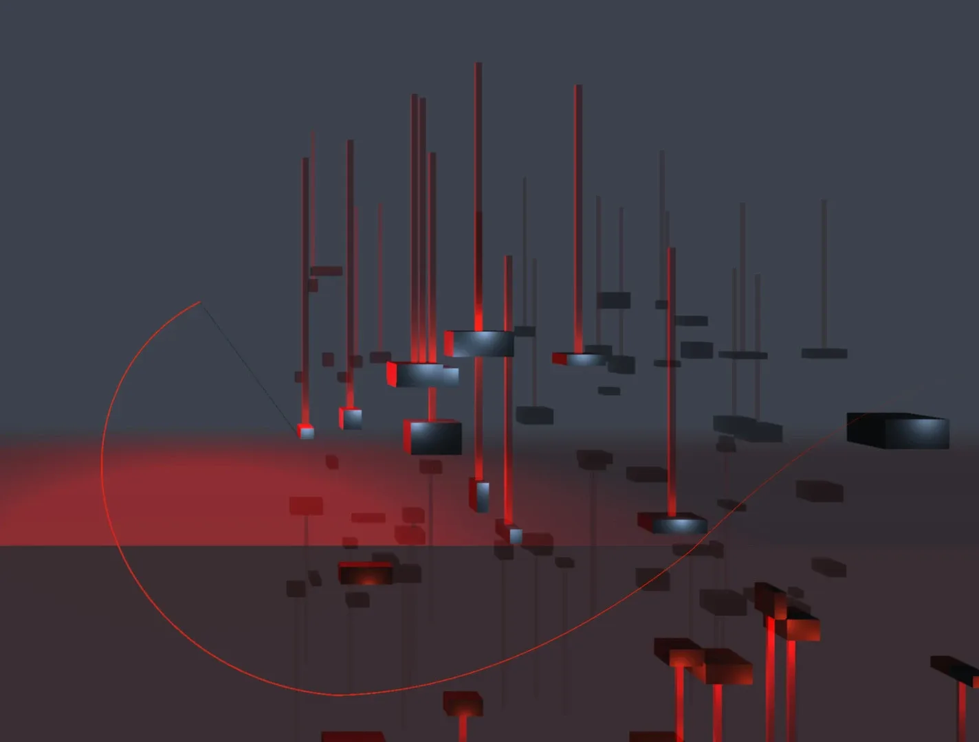 Floating Point is a free, peaceful game about using a grappling hook to swing yourself gracefully through randomly generated spaces. In the air, you're fighting gravity. When you splash down beneath the water, you're fighting your own buoyancy to swing yourself further into the depths. The only objective is to collect points, and the only thing that increases your points is swinging swiftly, smoothly and elegantly without hitting anything. As you pick up momentum, you start to glow, the bars you're collecting rise up, the music kicks in, and your trajectory burns a bright red line in the air, drawing huge, beautiful mathematical curves of your arcing flight. Also the name is a pun, so that's cool.